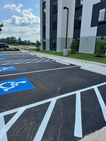 We provide beautiful and crisp line striping. Make sure your parking stalls and handy capped are are ADA approved all while providing clear parking for your customers.